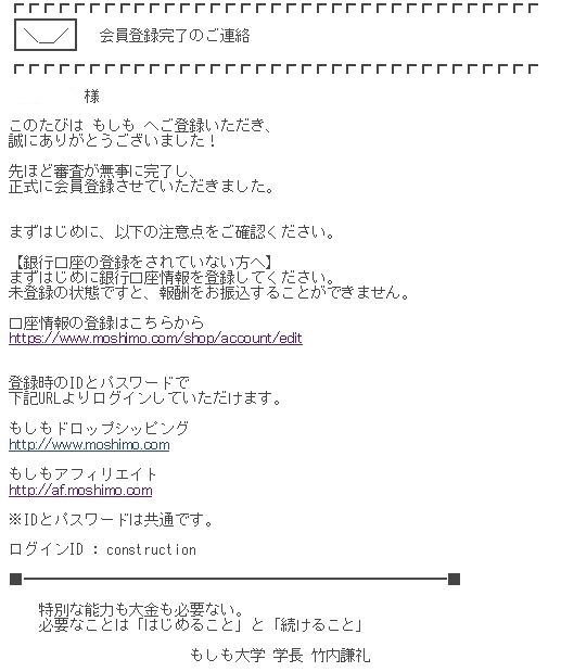全ての項目を入力すると会員登録は完了し、下の図のようなメールが自動送信されます。