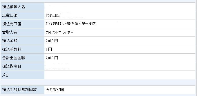 2.ネット銀行から暗号資産(仮想通貨)を取り扱っている会社(ビットフライヤーやコインチェック)に振込(手数料無料)